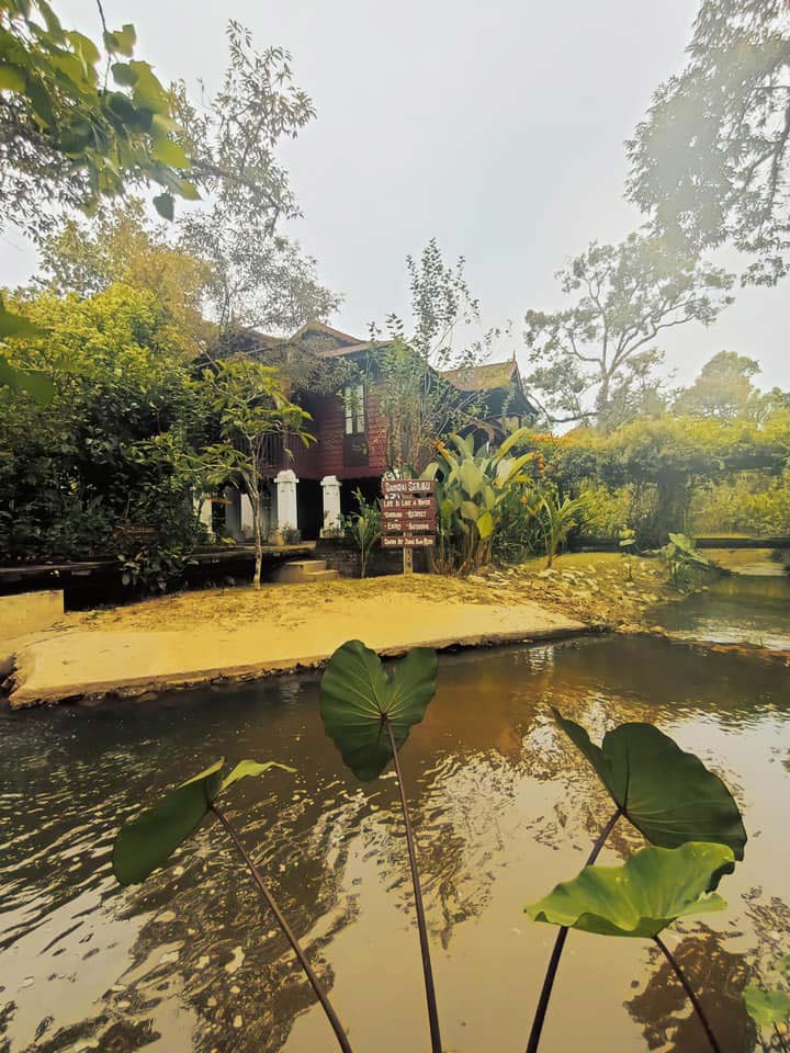 Red in colour, bold white stilts. The house represents a dwelling of a would be chief of the village. Skilled craftsmen has adorned the house to give a touch of refinement in its details